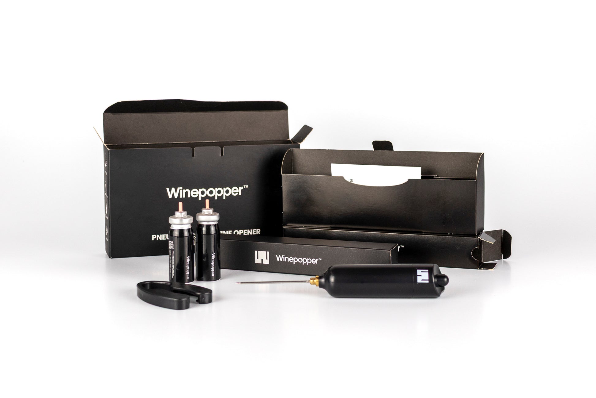 The Winepopper Lite uses an inert gas refill that creates the perfect pressure to open your wine bottle without effort, fully preserving the wine’s natural properties.